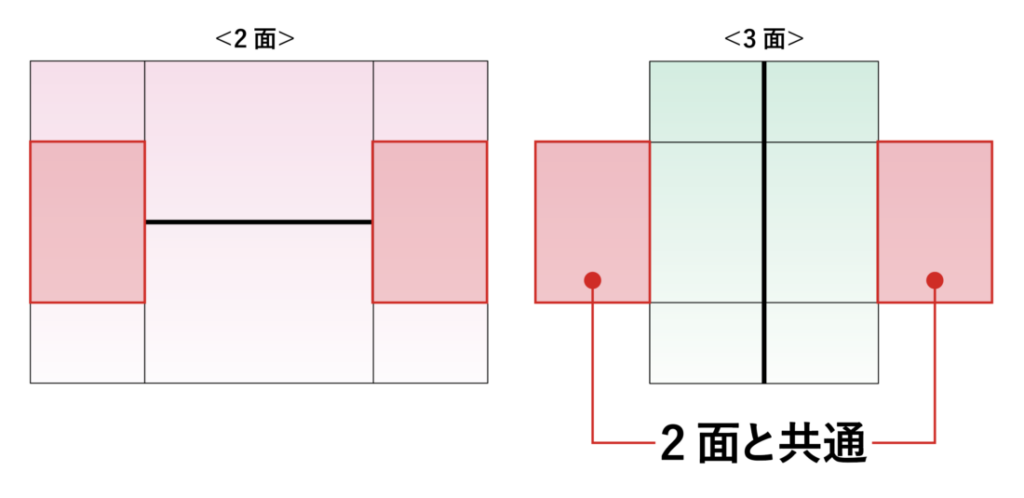 2面から3面へ展開する際に、必ず共通する部分が現れます。